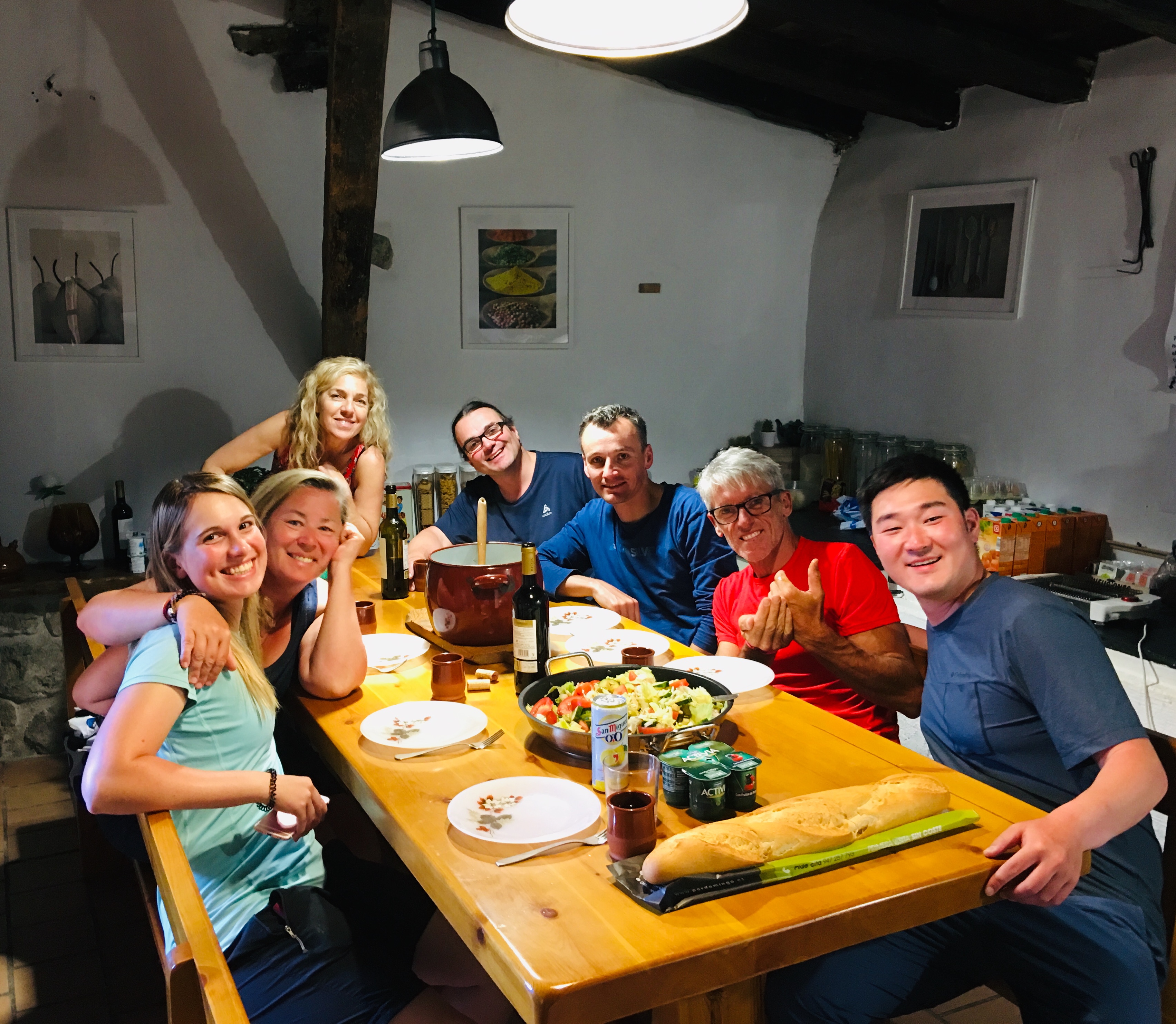 In 2017 I decided to walk El Camino De Santiago solo, feeling inexplicably drawn to it. I looked forward to this super-grand adventure with time to ponder my life, after raising a family of three gorgeous boys with my husband, Kevin. I was travelling alone but I set the intention that I would like to make friends to share the magnitude of the journey. I did not want to be wandering for 800km alone and sad! So at the end of a long few days of travelling from Brisbane to Paris, I boarded a final train to St-Jean-Pied-De-Port, the starting point of the Camino Francés. The train was full of pilgrims, some chatting excitedly. I noticed Sylvie sitting on her own, and as we disembarked I approached her to introduce myself. Within minutes she decided to join me at my pre-booked Albergue and we were off to the Pilgrim office to obtain our credentials. We explored the charming town, buzzing with expectation and shopped for walking poles. I learnt that this animated French Canadian woman was also married and a Mom of three. That night we treated ourselves to dinner out and toasted the debut of our great adventure with a glass of sparkling wine.