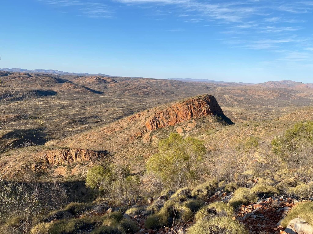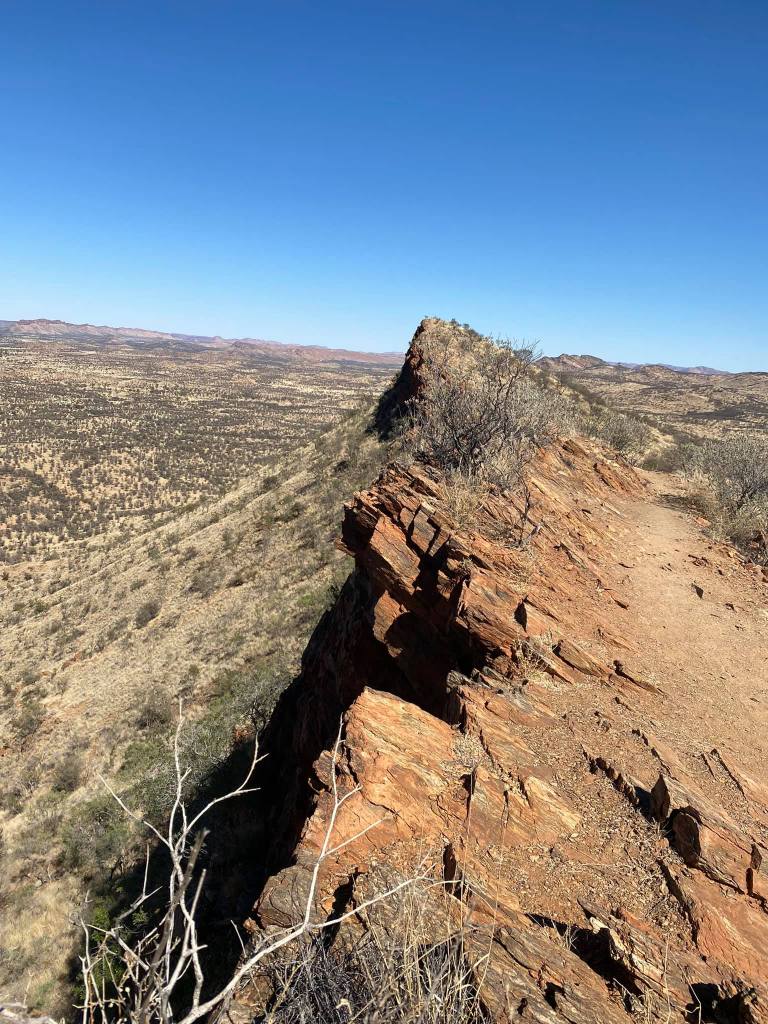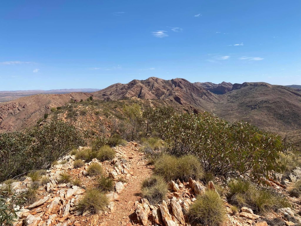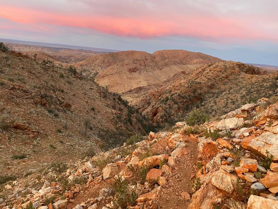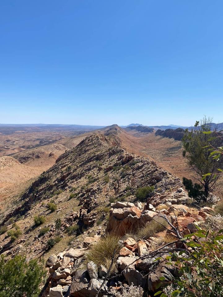Next was a steep climb to Mount Giles Lookout. I had to stop and perch on rocks several times to catch my breath. The view was stunning. Oh Larapinta. So much stillness and crushing beauty. I could see all the landmarks I’d climbed and the 160km length of the West MacDonnell Ranges, plus highest peak, Mount Giles. Sigh.