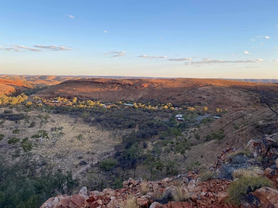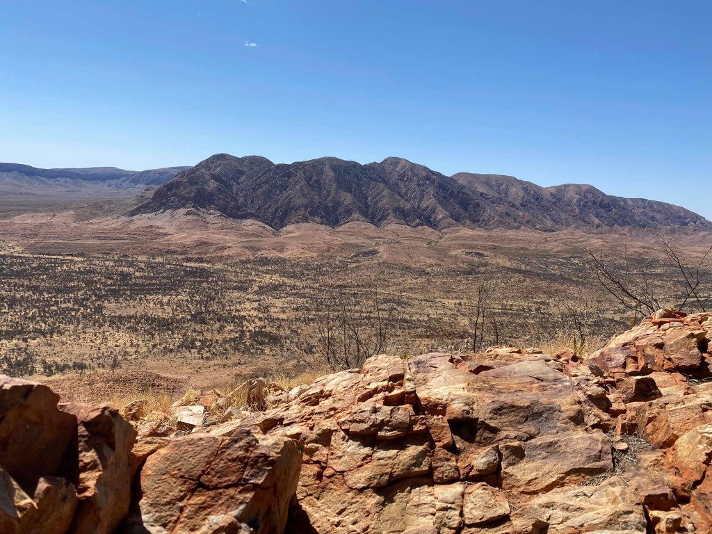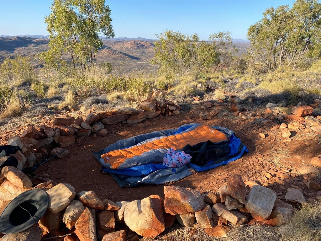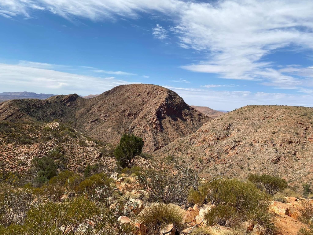 Next was a steep climb to Mount Giles Lookout. I had to stop and perch on rocks several times to catch my breath. The view was stunning. Oh Larapinta. So much stillness and crushing beauty. I could see all the landmarks I’d climbed and the 160km length of the West MacDonnell Ranges, plus highest peak, Mount Giles. Sigh.