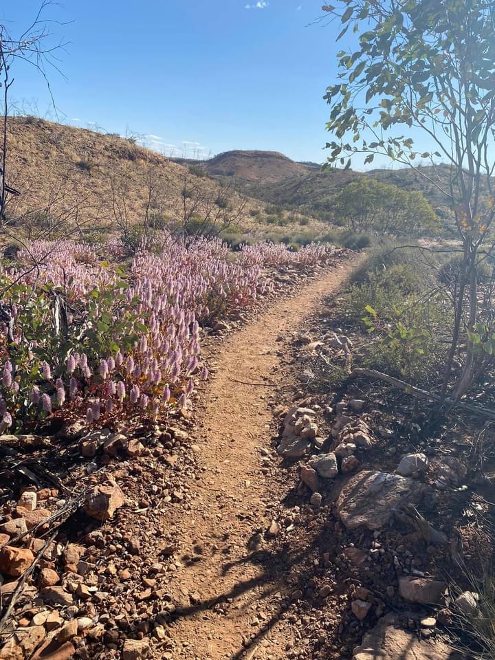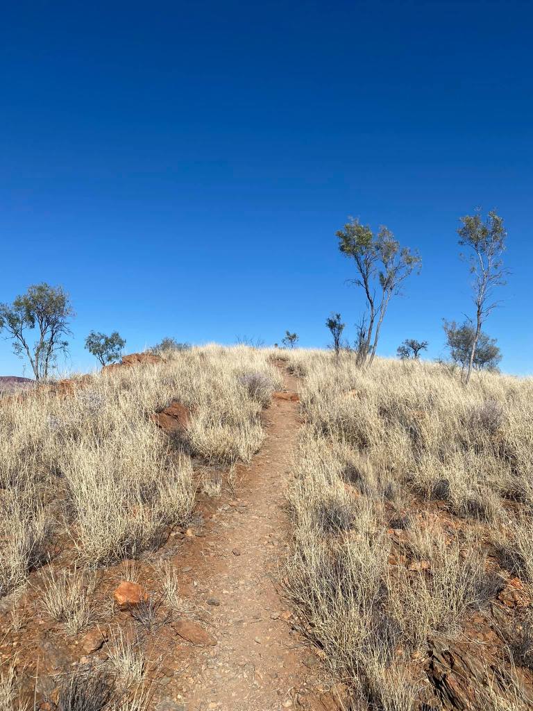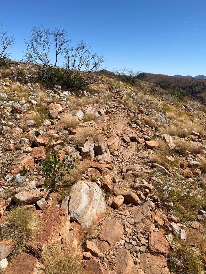 I walked 4.5km to the base of the hill, marvelling at the ever stretching pathways, maintained for my delight by the Larapinta volunteers, Friends of the Larapinta.