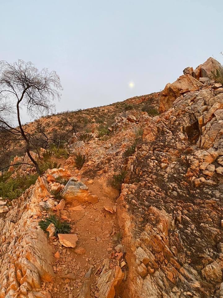 I set off from Simpsons Gap before sunrise after spending the night at the trailhead with a young Aussie couple who walked in the opposite direction and were about to finish. Little did I know how much climbing was ahead of me on this trail! I spent this day walking solo, gathering my confidence. I’d woken up with a headache which I suspected was fear driven. I slowly talked myself into feeling comfortable as I set a rhythmic pace. “I am here. I am here. And the Earth burst into song,” I cajoled.