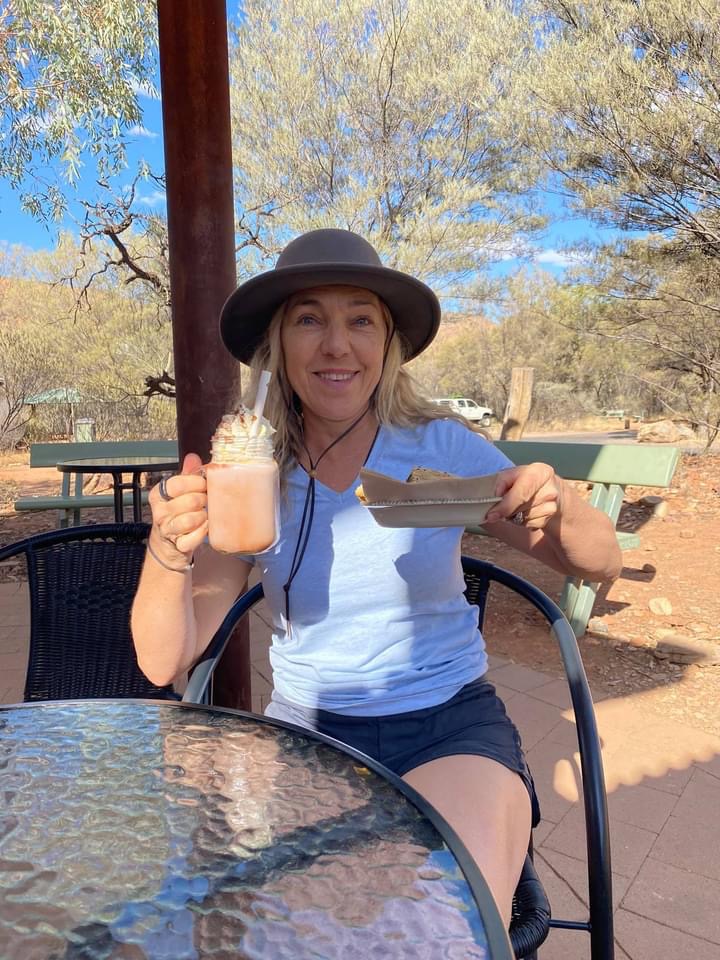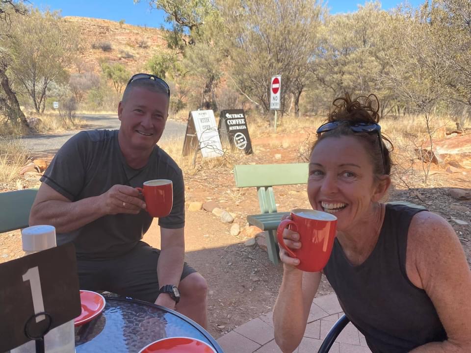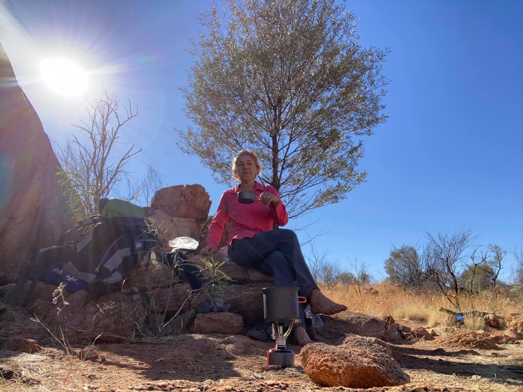I waved goodbye to Claire in the morning. Clancy and Simon had rolled in after dark the night before, and the three of us were soon languishing in the sun outside the kiosk enjoying delicious toasted sandwiches and cappuccinos. We chatted euphorically and ordered more coffee because we could. Larapinta hikers, Tim and Anne, pulled up a chair and we all got to know each other.