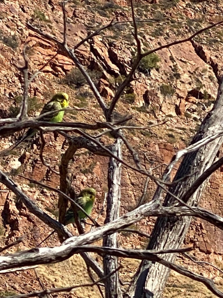 My chirpy friends here were Zebra Finches and green budgies that would take off dramatically in a flock, creating a snapping sound to reveal lime green undersides as they shot off on my approach.