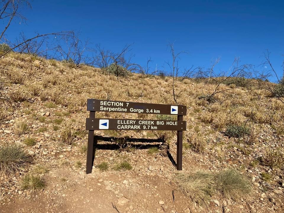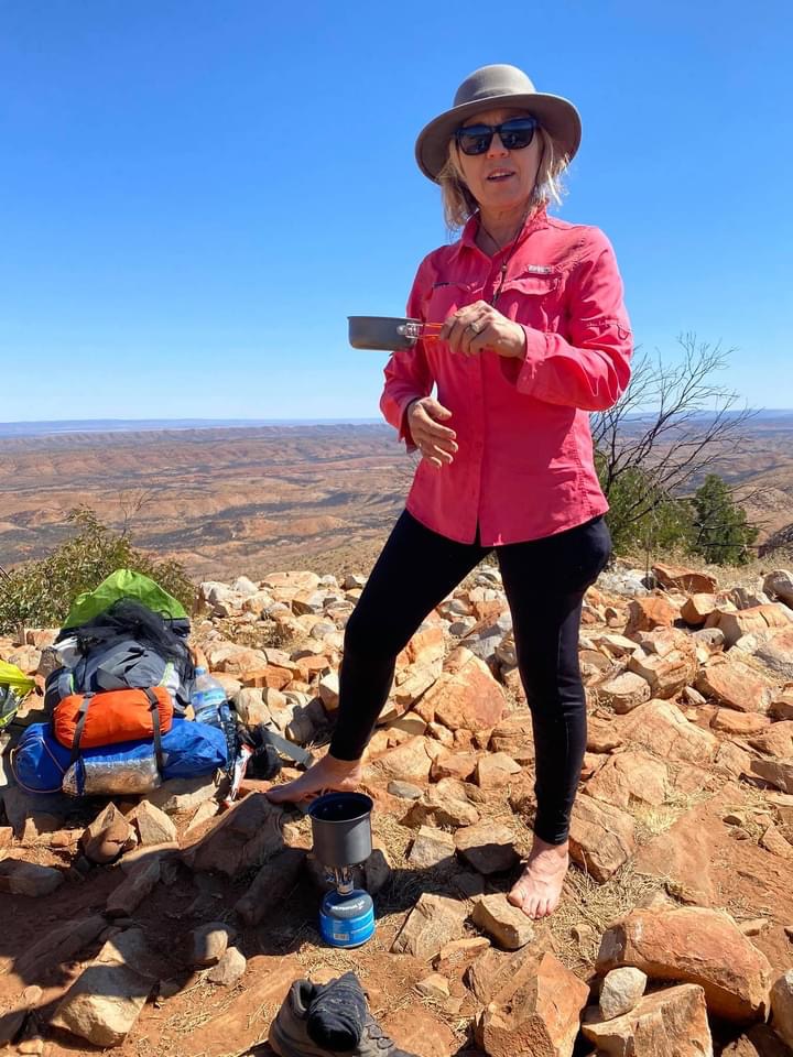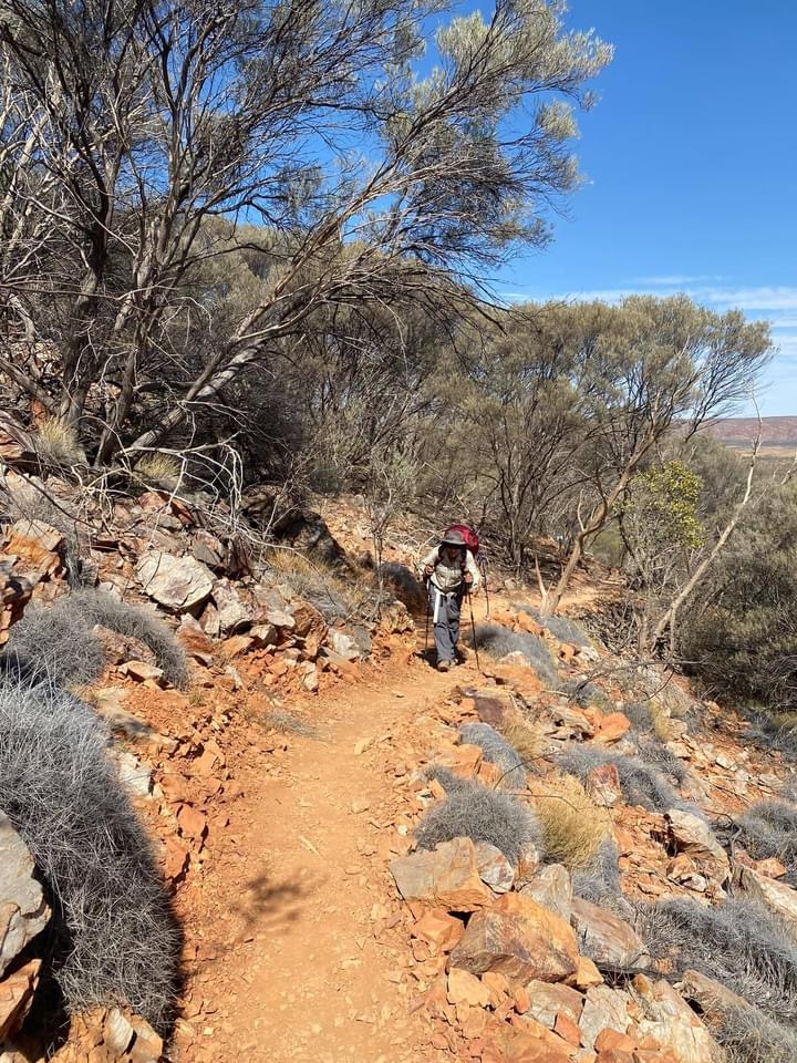 Count’s Point was stunning and I met some new hikers who were planning to sleep there and would become friends. I brewed some coffee and enjoyed a chat with a lady who lives just half an hour from my home and two men from Geelong – a winemaker and a doctor. I decided to descend and walk the extra 6.5km to the Serpentine trailhead. This was the beauty of travelling solo: I could blow with the wind and make last minute decisions just because I felt like it. I was the captain of my ship. Just my trusty backpack and I snailing our way through the red centre fantastic-a.