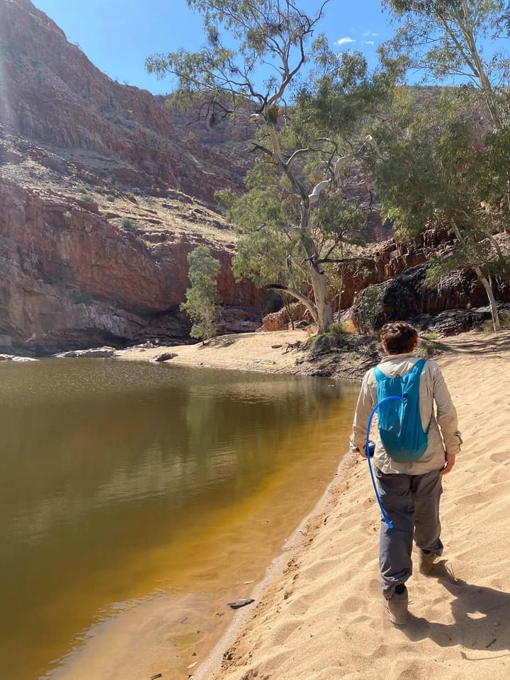 With time on my side, I decided to walk to Glen Helen Gorge about 4km off the main trail but still signposted. I booked a night in the lodge which had just reopened after a long closure due to Covid. How exciting it would be to sleep in a bed.