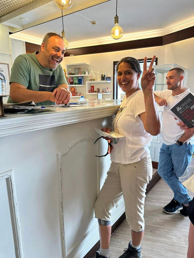 We walked 26km to Oia where the monastery hovers over the ocean. What a reception by Tanya at Cala Inn. She was waiting with a jug of Sangria to welcome us and a restaurant reservation.